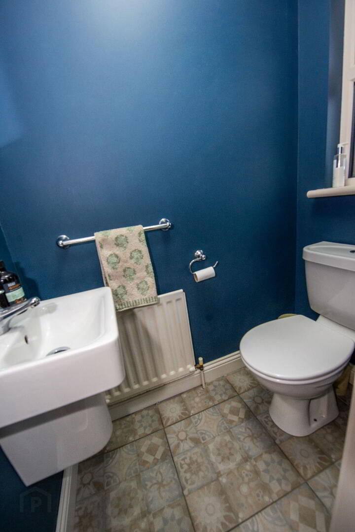 DOWNSTAIRS W.C. Wash hand basin & w.c. Tiled floor . Single panel radiator