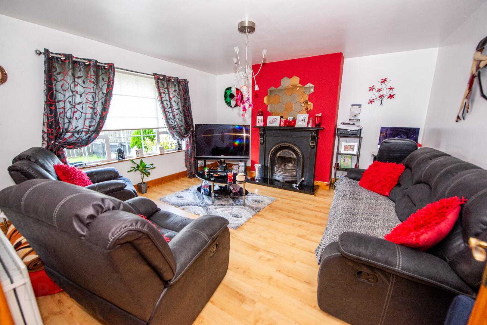 LOUNGE 14'0" X 13'10" Cast iron style fireplace . Laminate floor . Double panel radiator . Power points