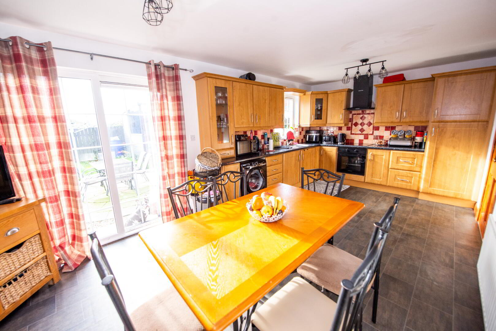 KITCHEN/DINING 21'0" X 10'9" High and low level units . Built in oven , hob and extractor fan . Sink unit with drainer . Patio doors to rear garden . Panel radiator . Power points