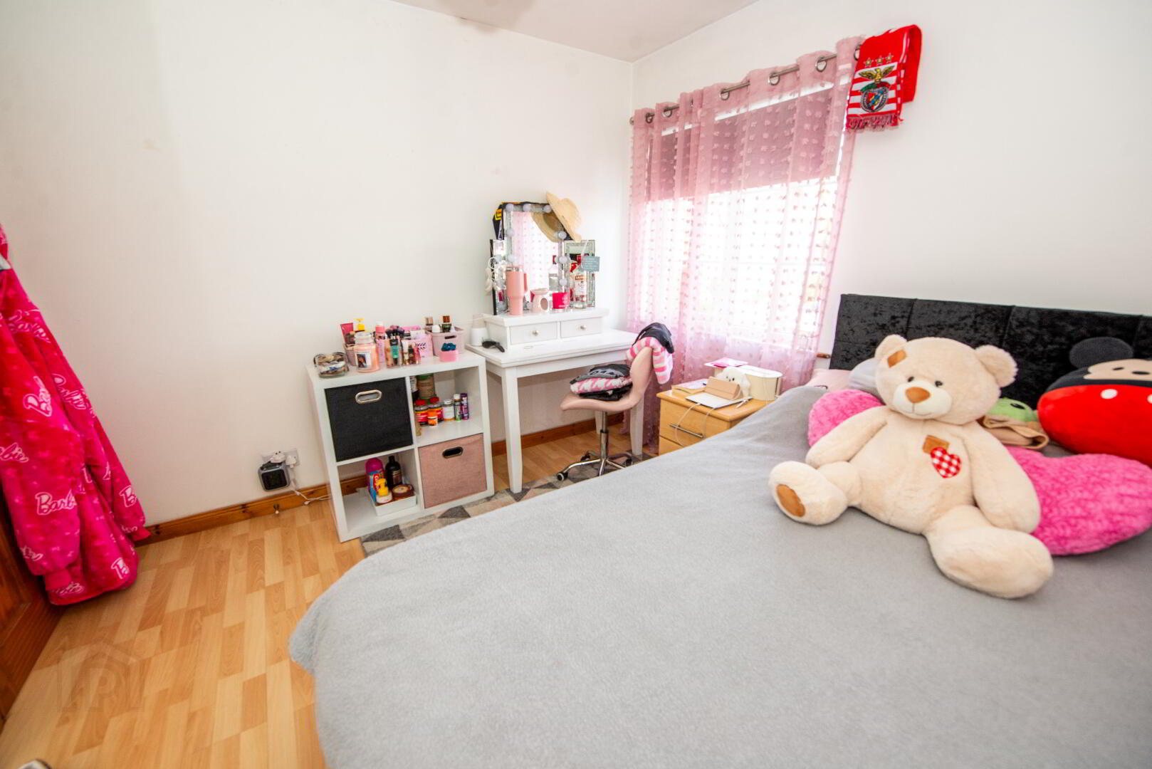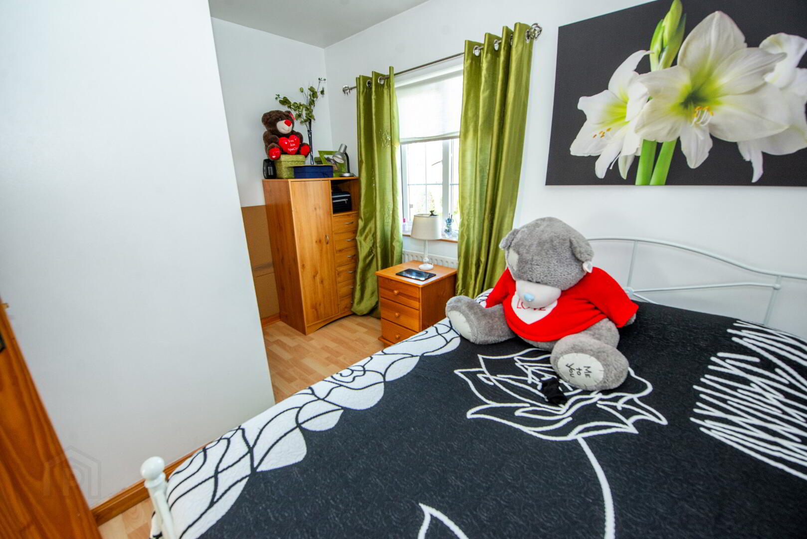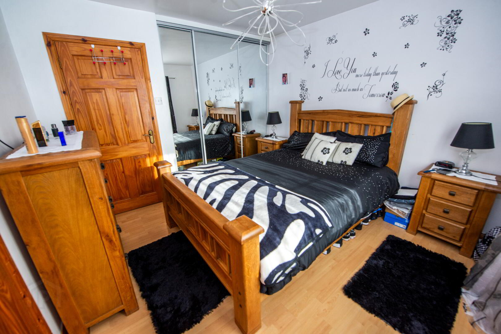MASTER BEDROOM 10'9" X 10'7" Built in wardrobe with mirrored sliding doors .Laminate floor Single panel radiator . Power points