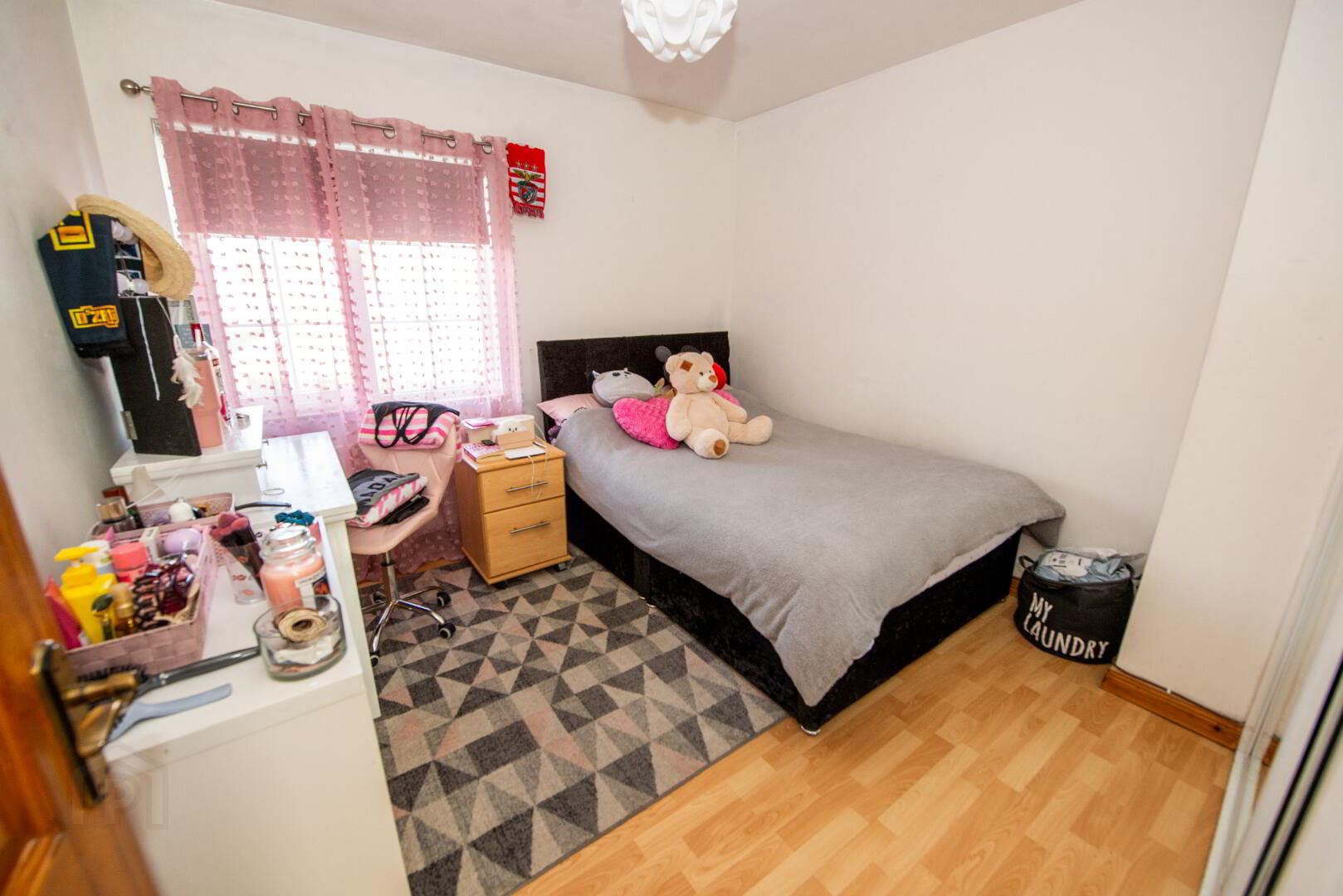 BEDROOM 3 10'9" X 9'9" ( L- shaped ) Built in wardrobe. Laminate floor . Single panel radiator . Power points