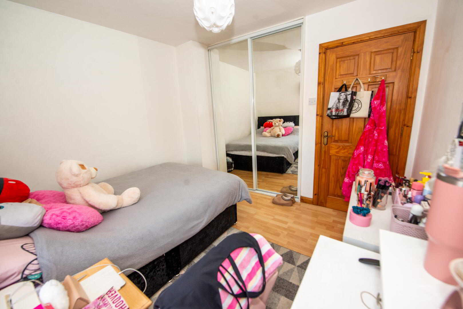 BEDROOM 2 10'0" X 9'6" Built in wardrobe with mirrored sliding doors . Laminate floor. Single panel radiator . Power points