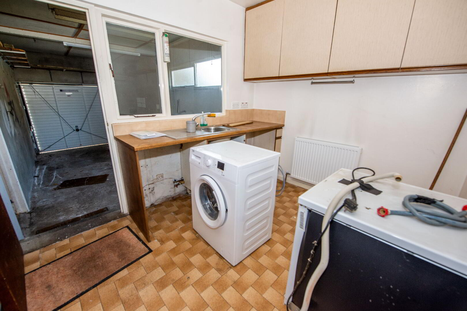 UTILITY ROOM 9'9" X 8'3" Sinle drainer sink unit . Plumbed for washing machine . Single panel radiator . Power points .
