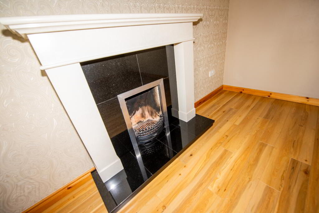 LOUNGE 13'3" X 13'2" Sandstone style fireplace with granite effect inset and hearth . Wooden floor . Double panel radiator . Power points