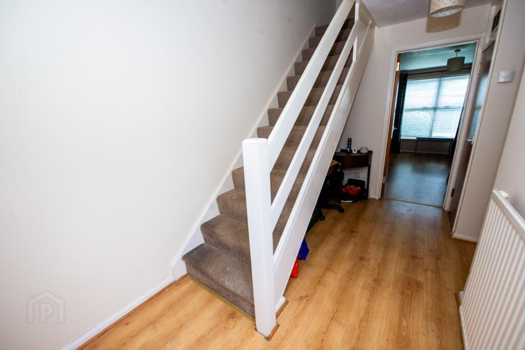 HALLWAY Glazed PVC front door.Laminate floor. Single panel radiator .Walk in cloakroom/storage . 2 further built in storage cupboards .
