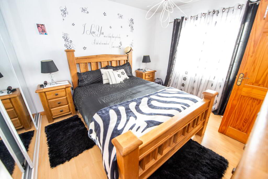 MASTER BEDROOM 10'9" X 10'7" Built in wardrobe with mirrored sliding doors .Laminate floor Single panel radiator . Power points