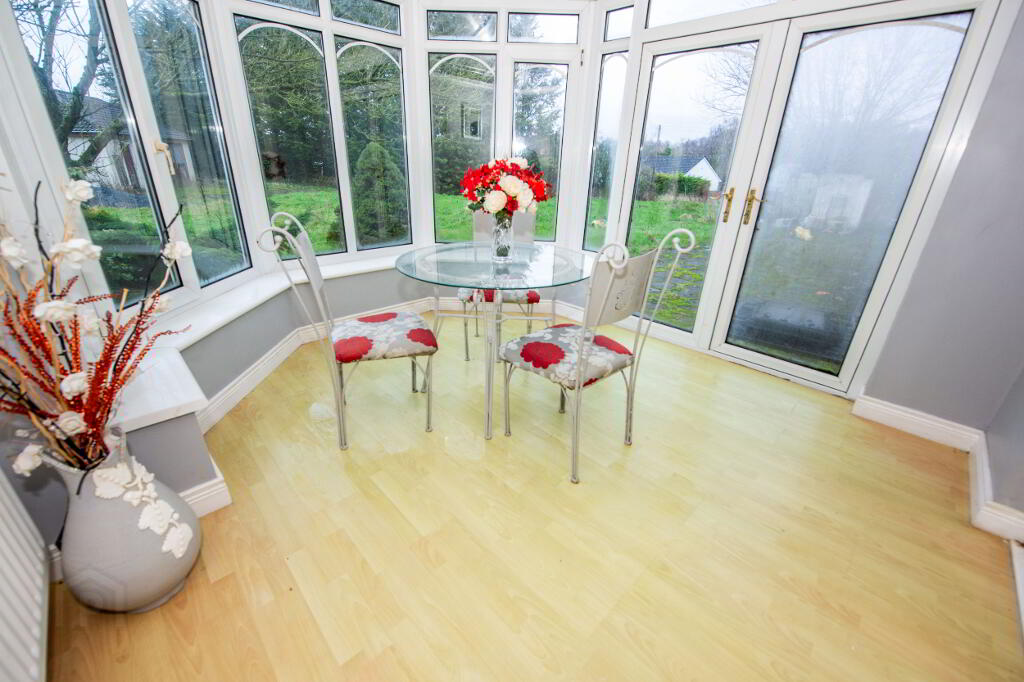 CONSERVATORY 12'4" X 10'10" Laminate floor . Double panel radiator . PVC French doors to back garden