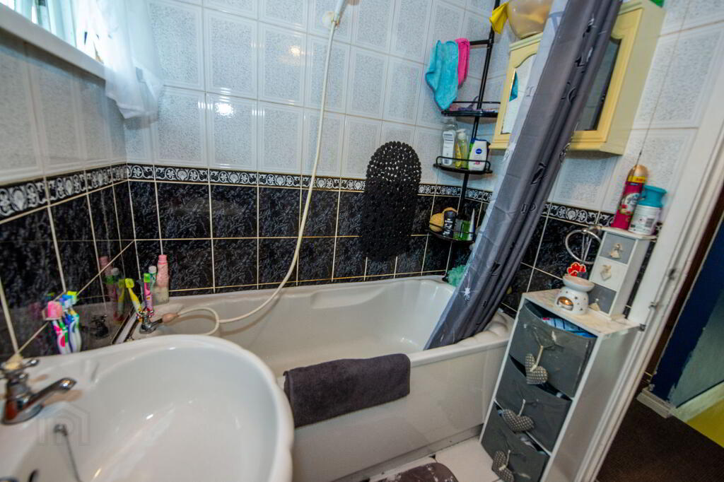 BATHROOM Panel bath , wash hand basin and w.c. Tiled walls .Tiled floor . Single panel radiator